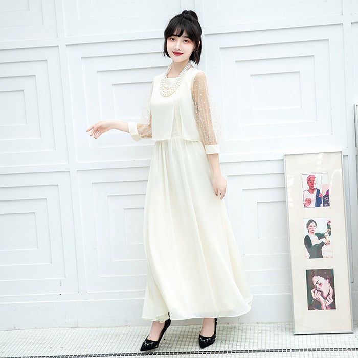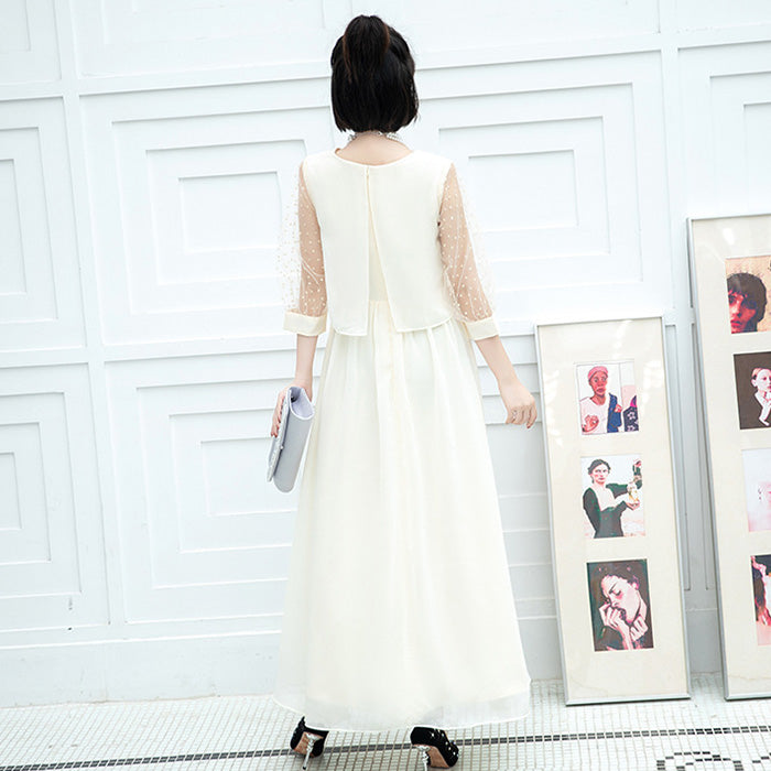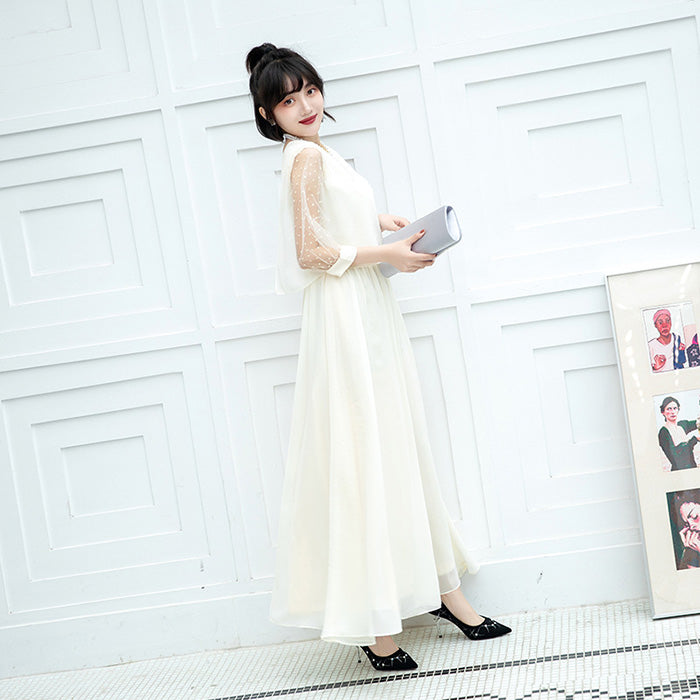 大きいサイズレディースシフォン袖のシャンパンホワイト・エレガンスドレスワンピース(3L/4L/5L/6L)オケージョン/結婚式