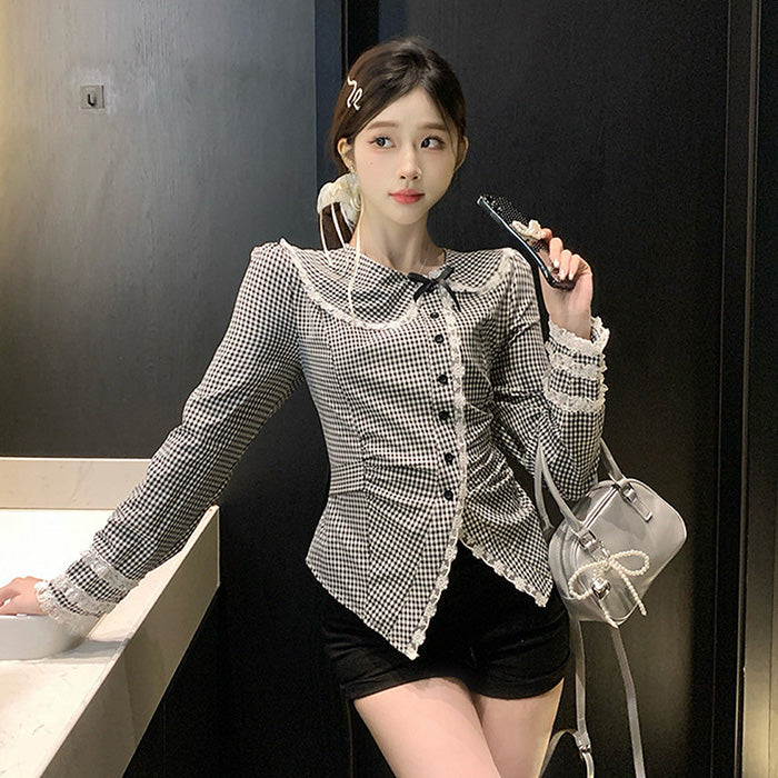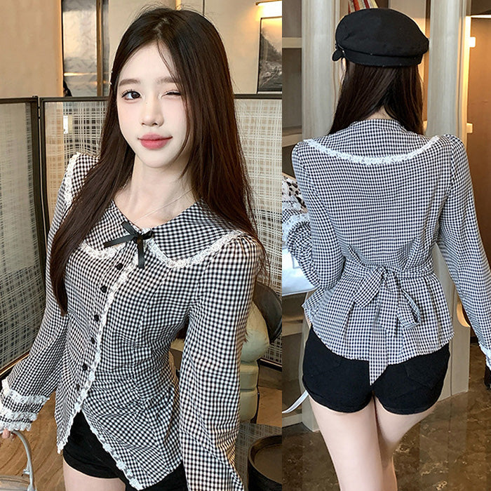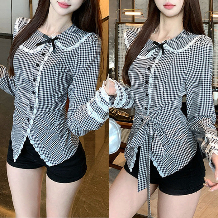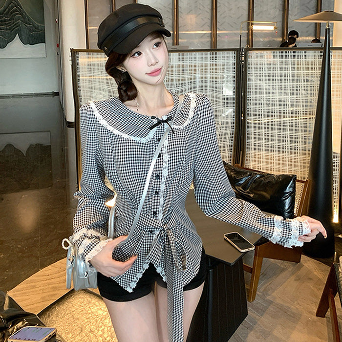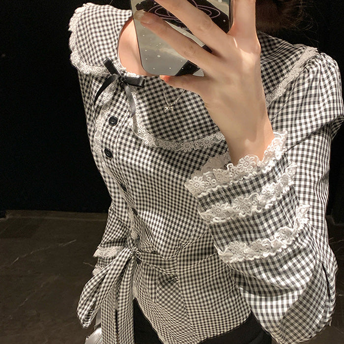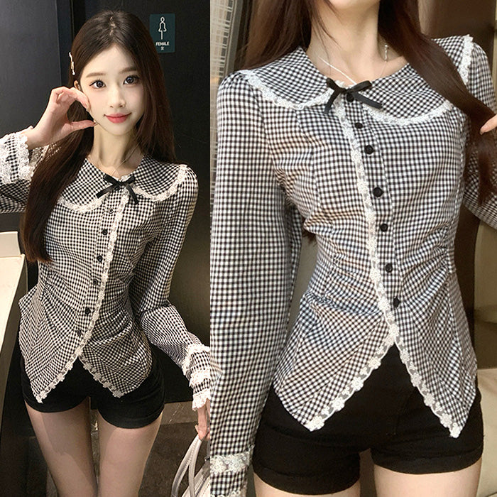 大きいサイズレディースノワールチェックのレース襟スウィートブラウス(L/LL/3L/4L/5L)