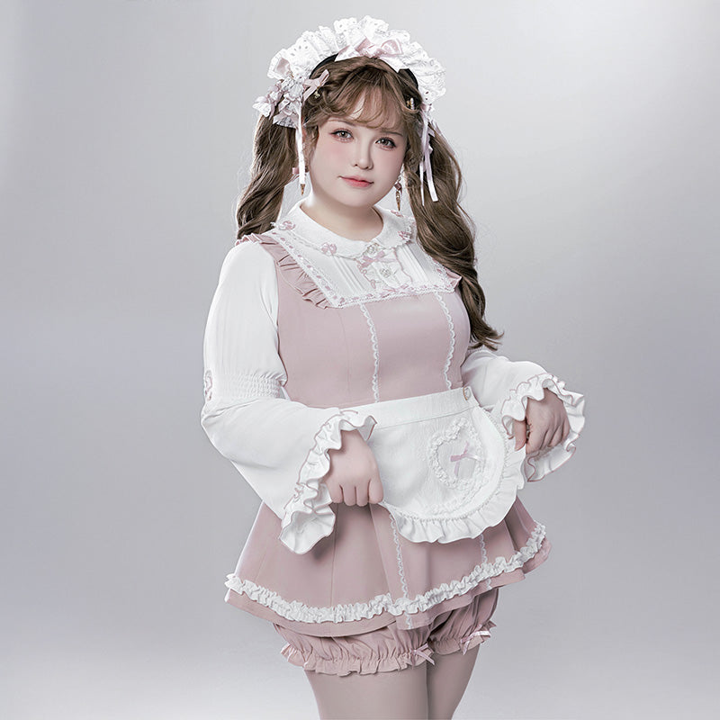 とびきり可愛いを叶える、くすみピンクの量産型・地雷系デザインの大きいサイズセットアップ。