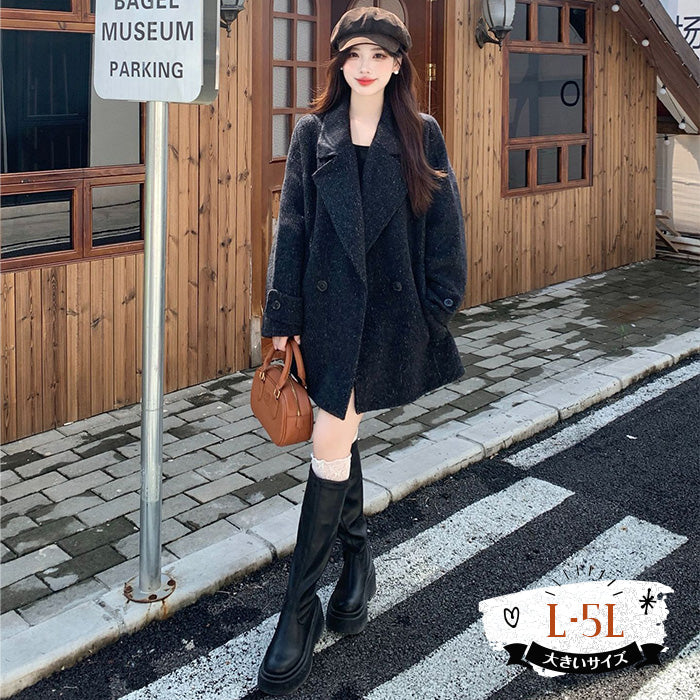 冬のお出かけをもっと楽しく、もっとあったかくしてくれる大きいサイズのふんわりコートが登場しました。落ち着いたチャコールカラーが大人っぽく、どんなコーデにもなじむのに、ゆるっとしたシルエットでぽっちゃりさんの体型もやさしく包んでくれるデザインです。