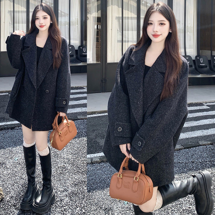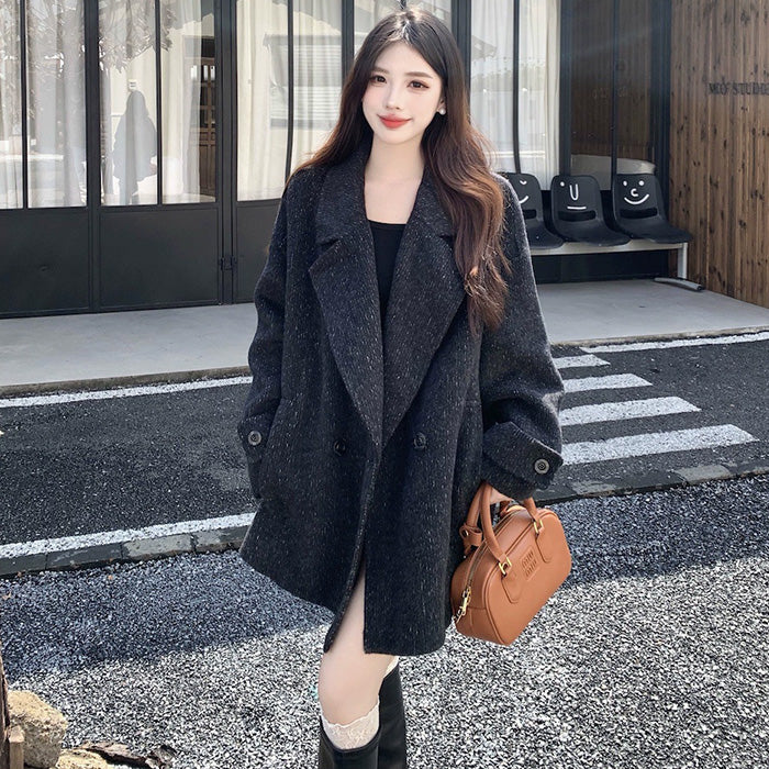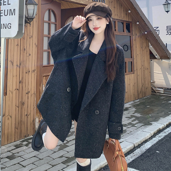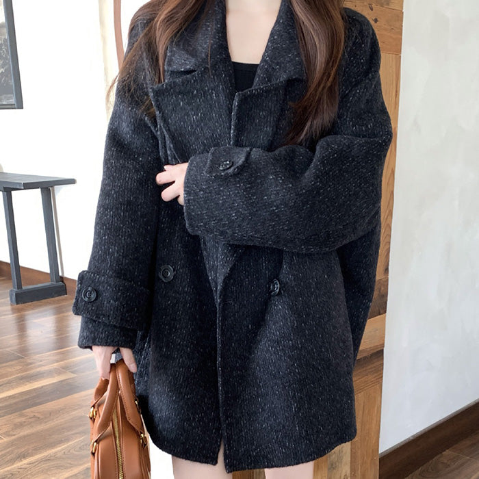 ダブルボタンのクラシックなデザインは着るだけでコーデが引き締まり、パンツにもワンピースにも相性抜群。ショートすぎずロングすぎない絶妙な丈感が、下半身をさりげなくカバーしながらスタイルよく見せてくれます。