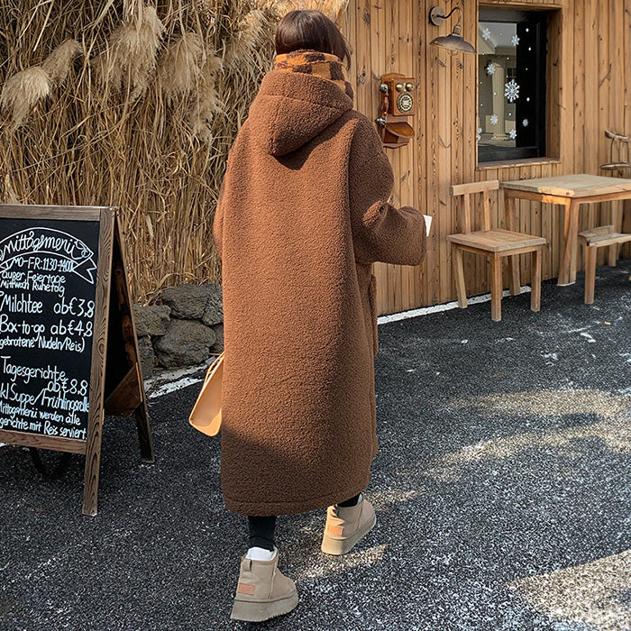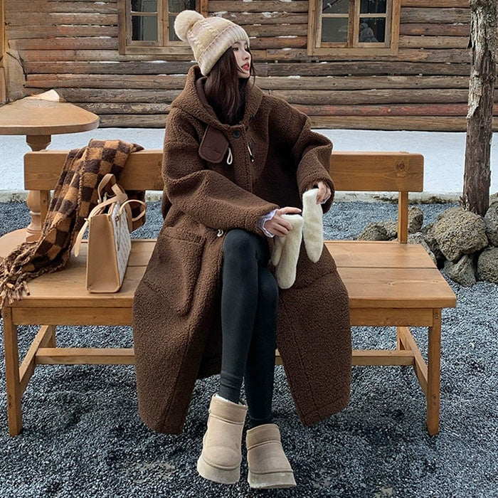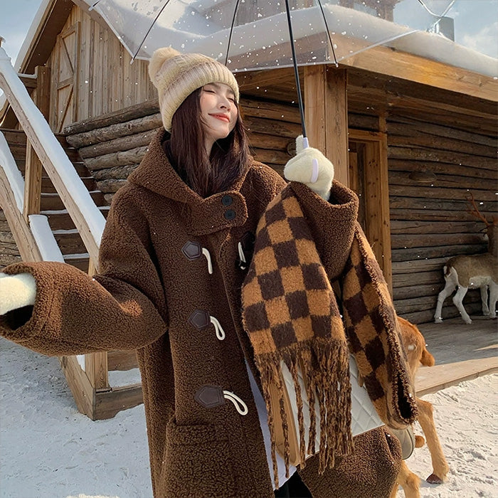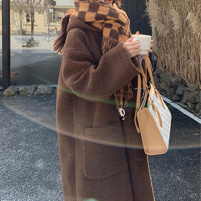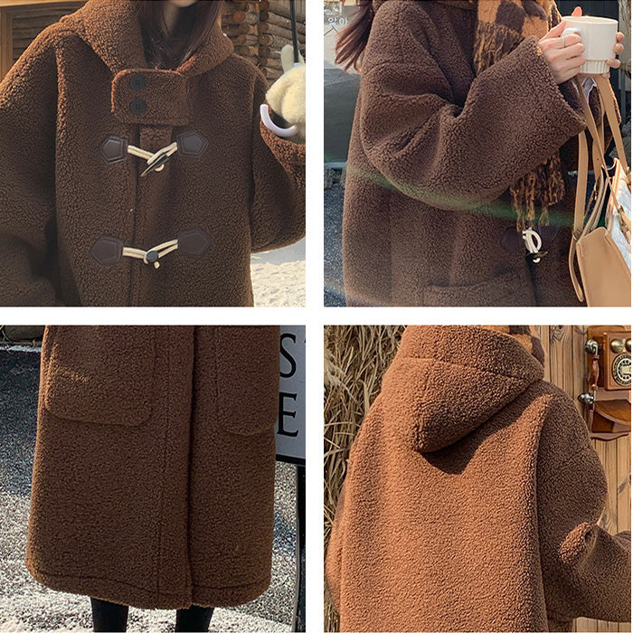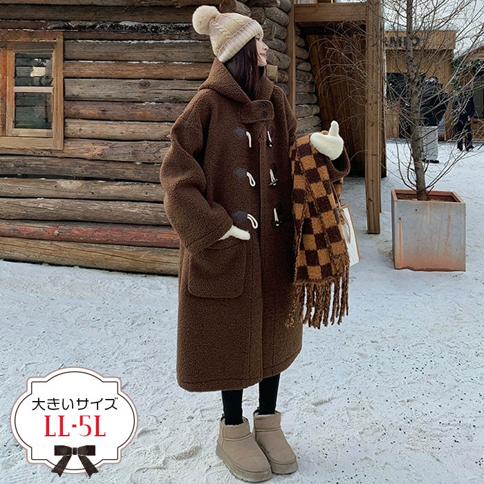 大きいサイズレディースブラウン・ふわもこダッフルコート(LL/3L/4L/5L)