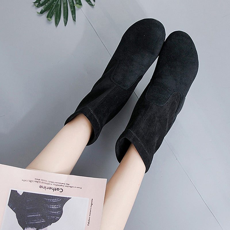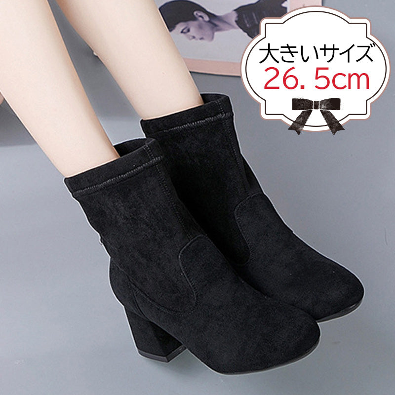 秋冬コーデをぐっと大人かわいく見せてくれる、大きいサイズのぽっちゃりさん専用ブーツが新登場です。やわらかいブラックスエード調の素材で、重く見えないのにしっかりあたたかい一足。どんな服にも合わせやすく、毎日のコーデの味方になってくれます。