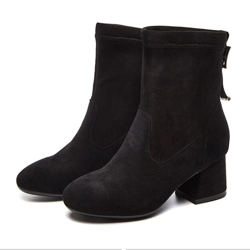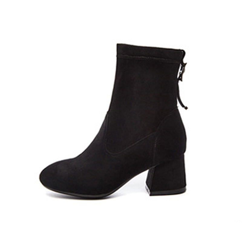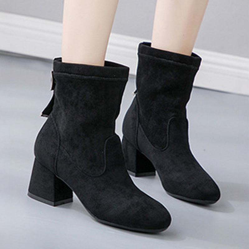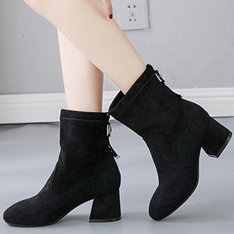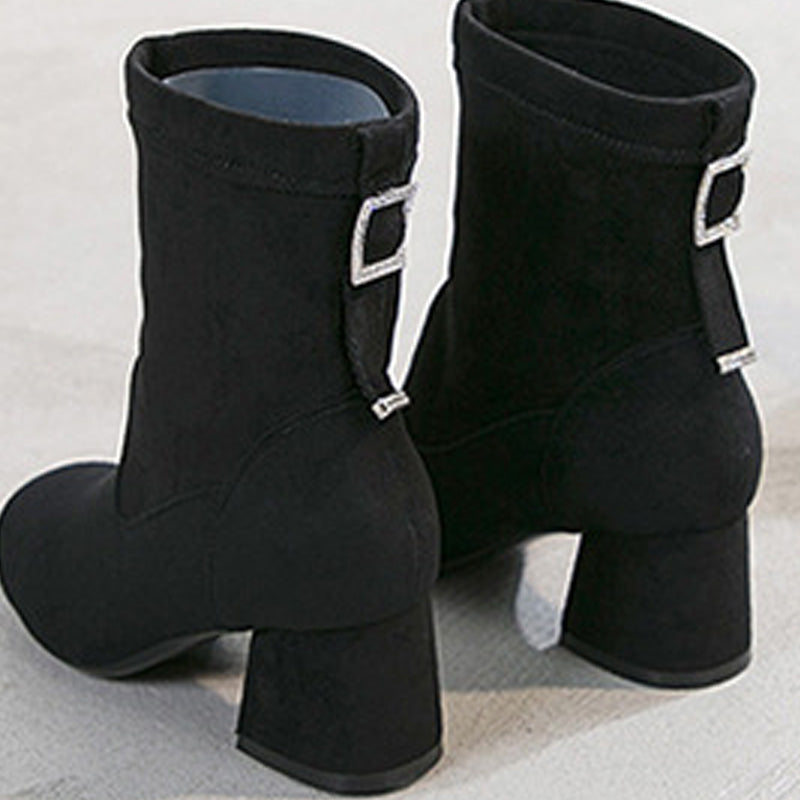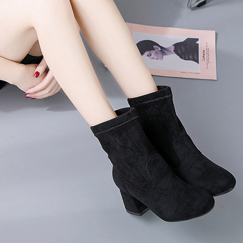5.5cmの太めヒールは安定感があり、長時間歩いても疲れにくい高さに設定。美脚見せも叶えながら、日常使いしやすいバランスに仕上げました。ショート丈なのでスカートにもパンツにも合わせやすく、秋冬のデイリーコーデにぴったりです。