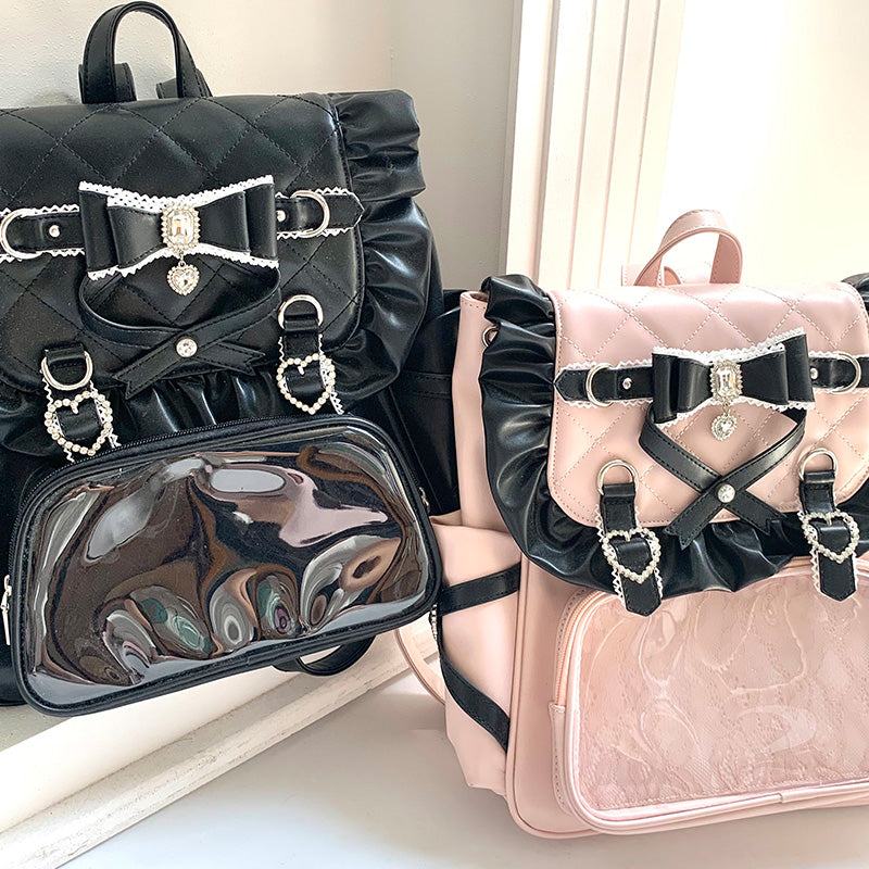 大きいサイズでも背負いやすく、かわいいだけじゃなく実用性も高いバックパックを探している方にぜひおすすめしたいアイテムです。地雷系・量産型・甘辛ミックスが好きな方にぴったりの特別なリュックです。