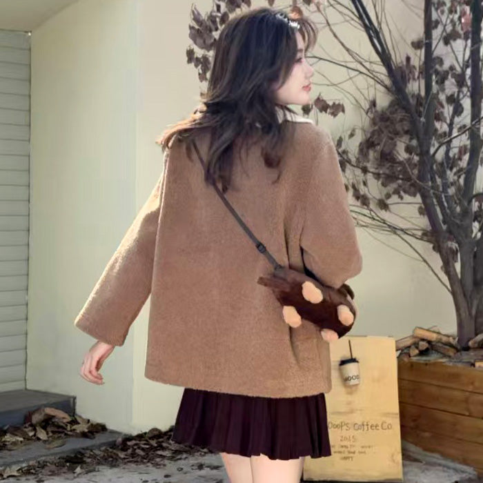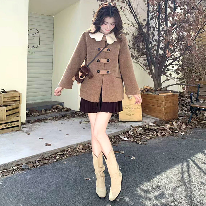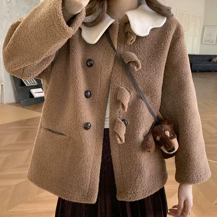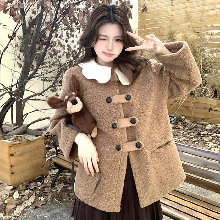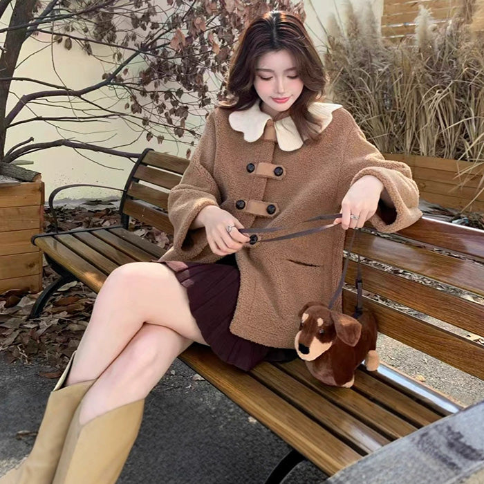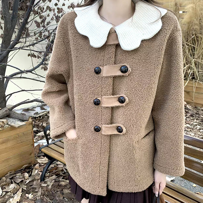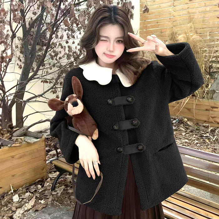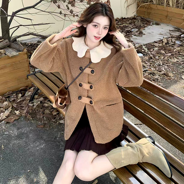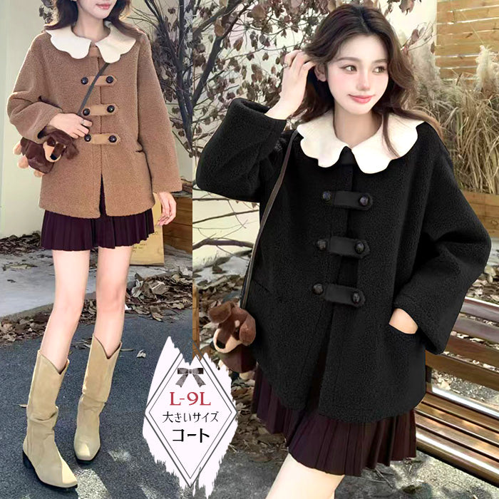 大きいサイズレディースミルクカラー襟のドーリーボアコート(L/LL/3L/4L/5L)