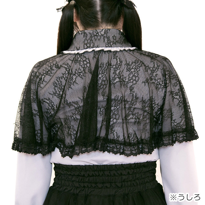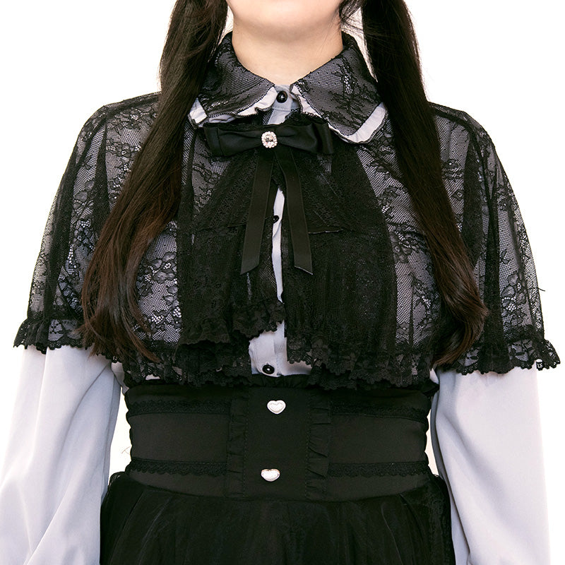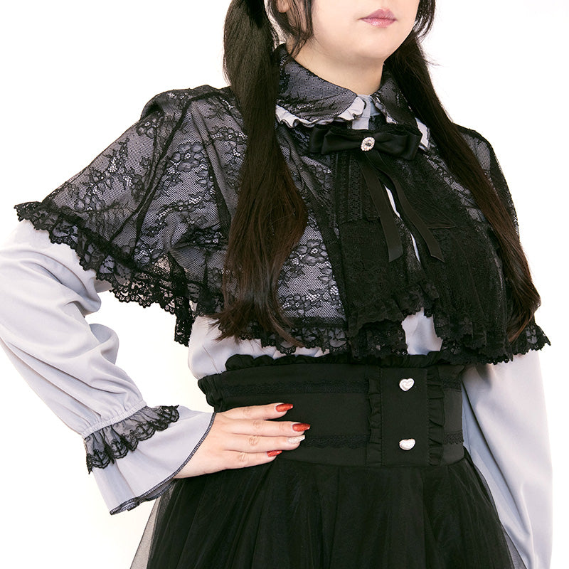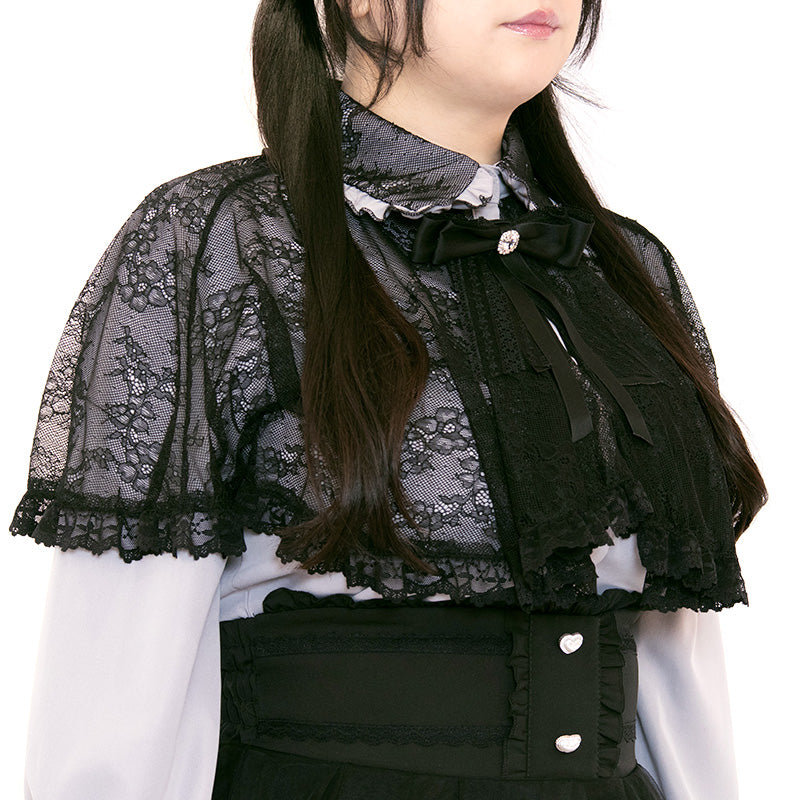 大きいサイズレディースメロウナイト・地雷グレーブルーレースケープブラウス(3L/4L/5L)
