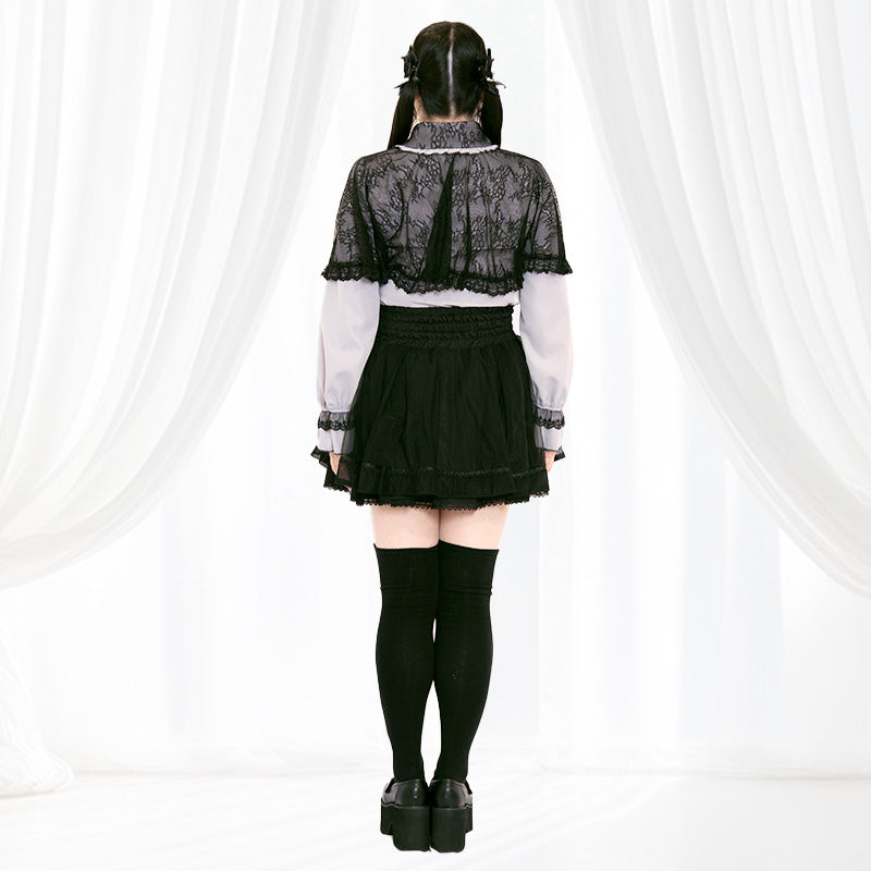 繊細なレースとリボンが目を引く、地雷系・量産系コーデにぴったりな大きいサイズ対応ブラウスです。