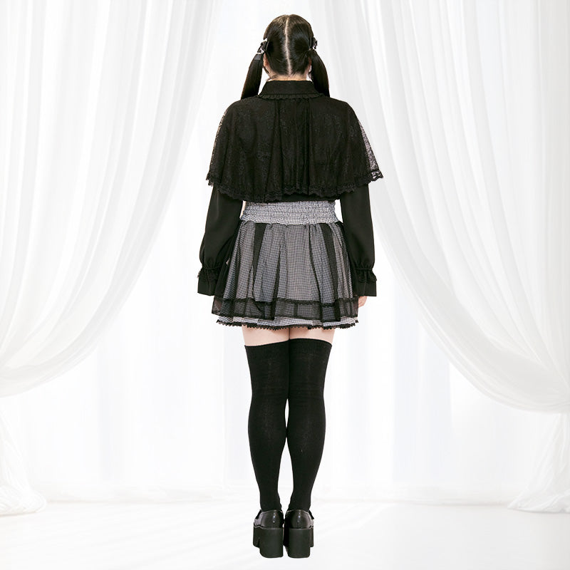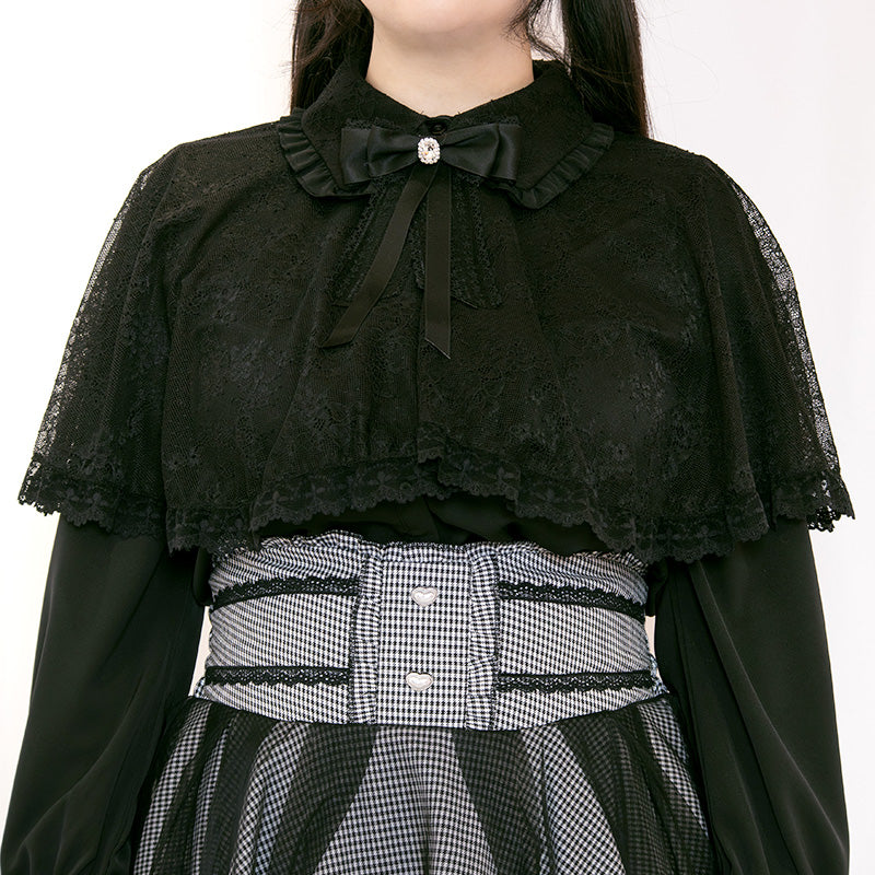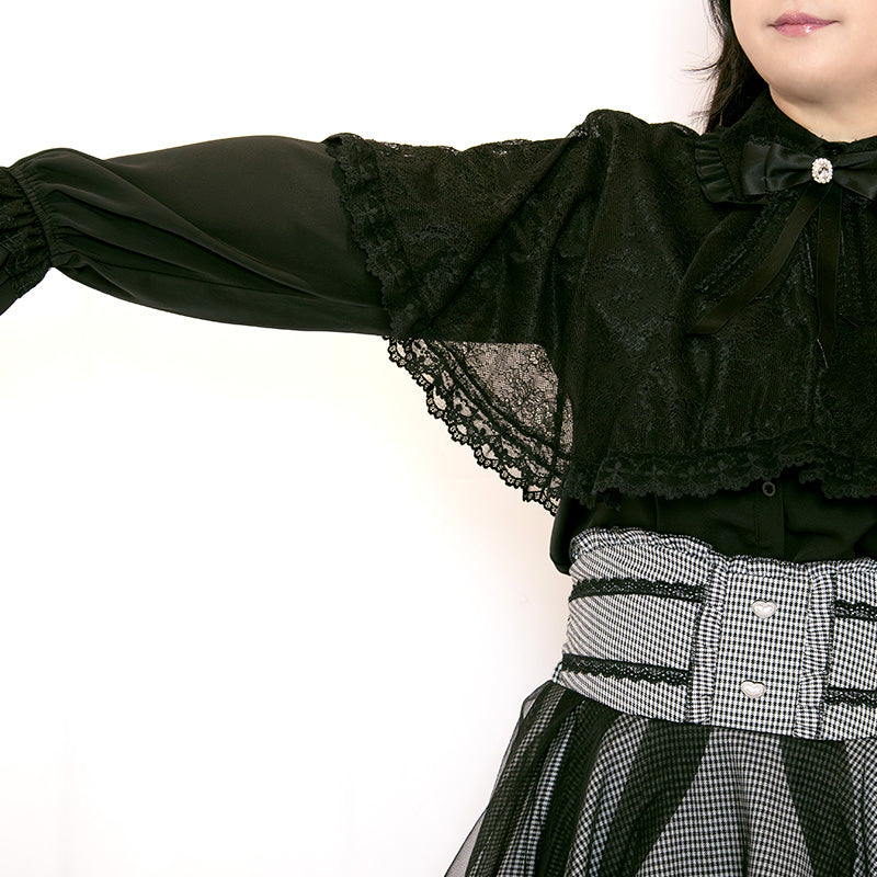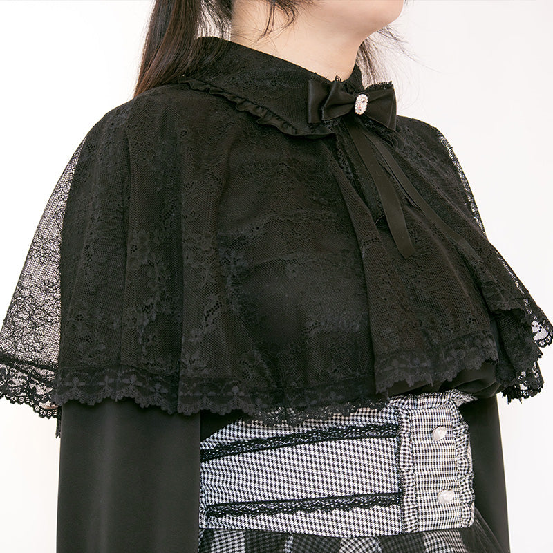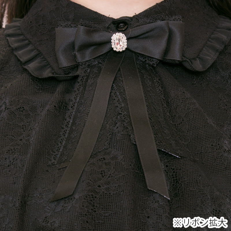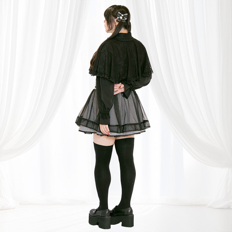 大きいサイズレディースメロウナイト・地雷ブラックレースケープブラウス(3L/4L/5L)