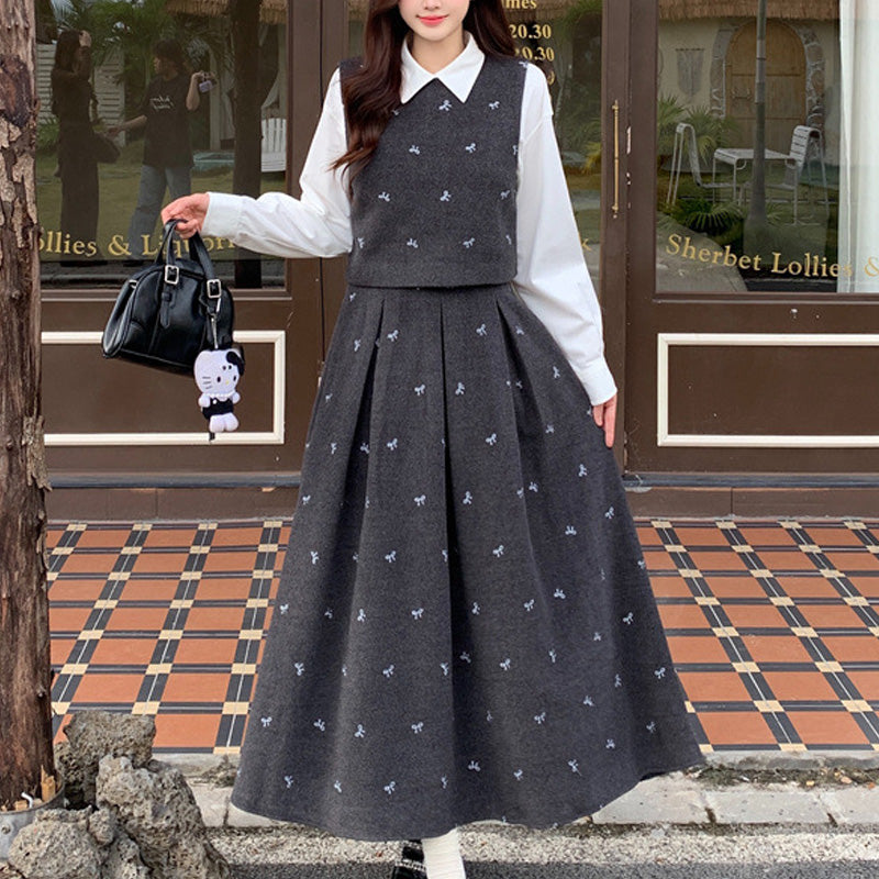 ブラウス・ベスト・スカートが揃ったセットなので、コーデに迷わずすぐ着られるのが魅力。