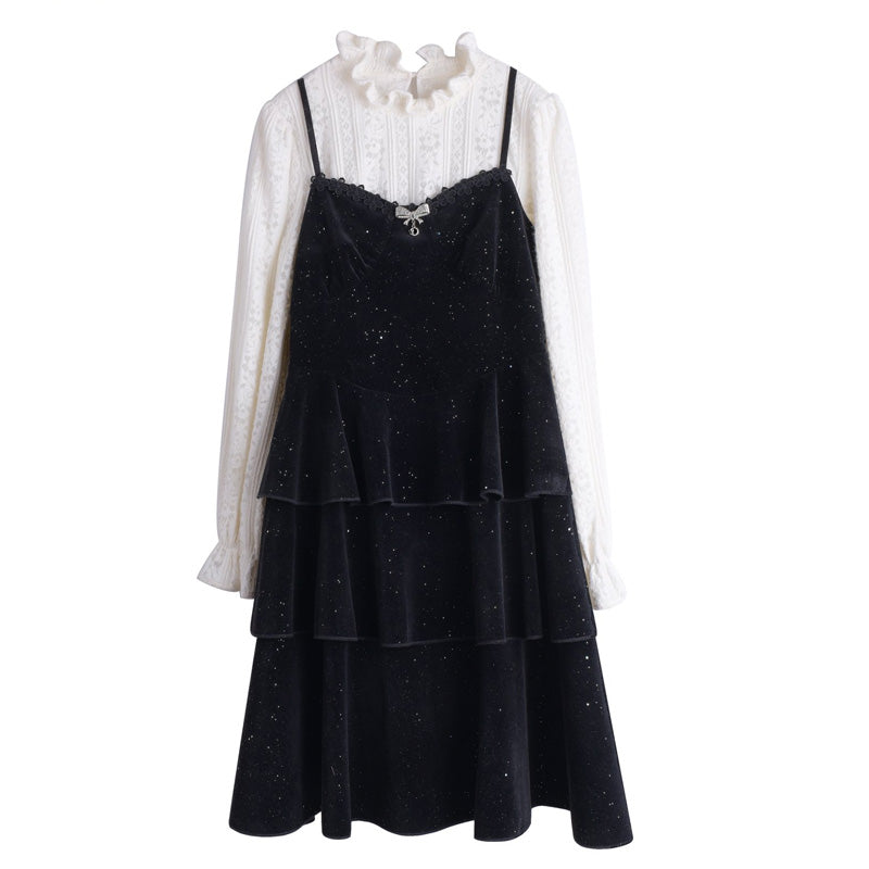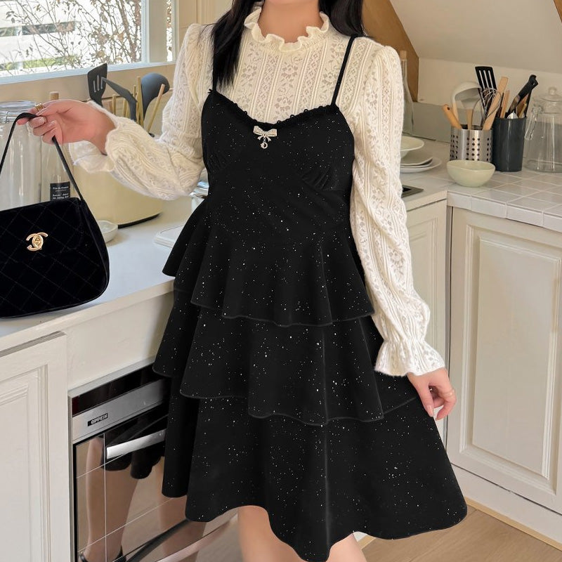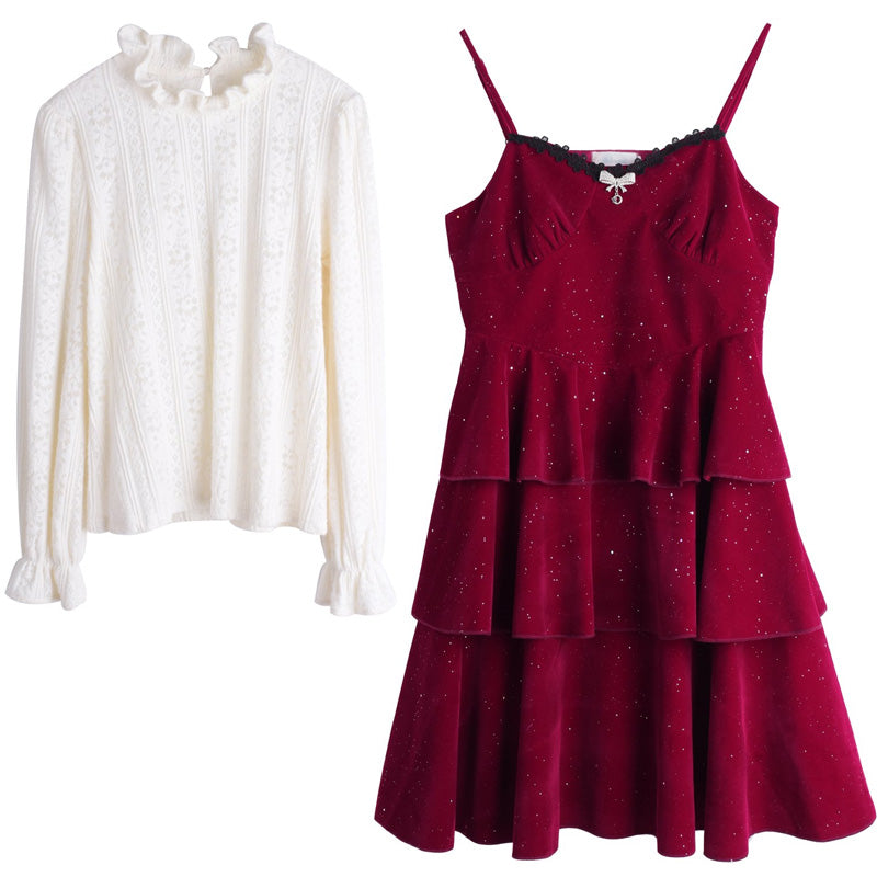 ふんわりきらめく生地感が目をひく、キャミワンピとインナーのセットアイテムです。