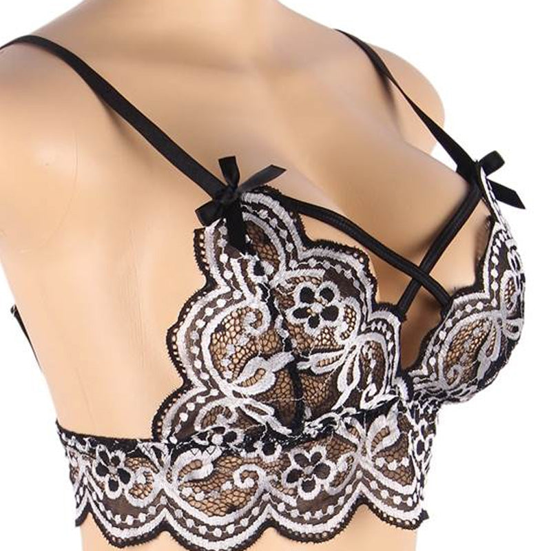 繊細なフラワーレースに、胸元を美しく見せるクロスデザインを重ねた、