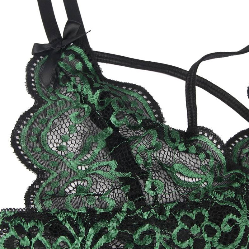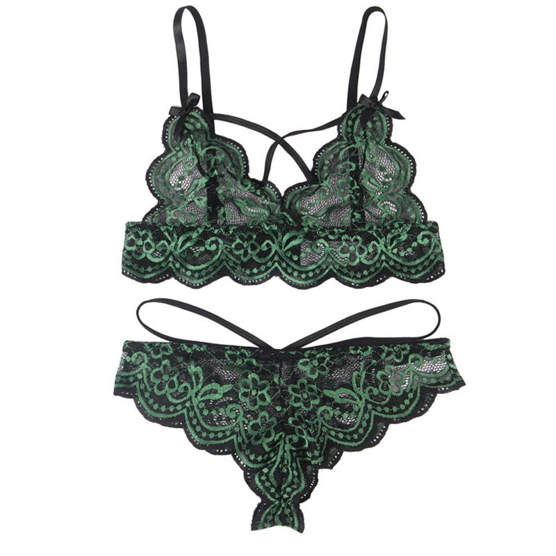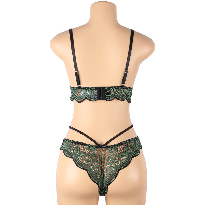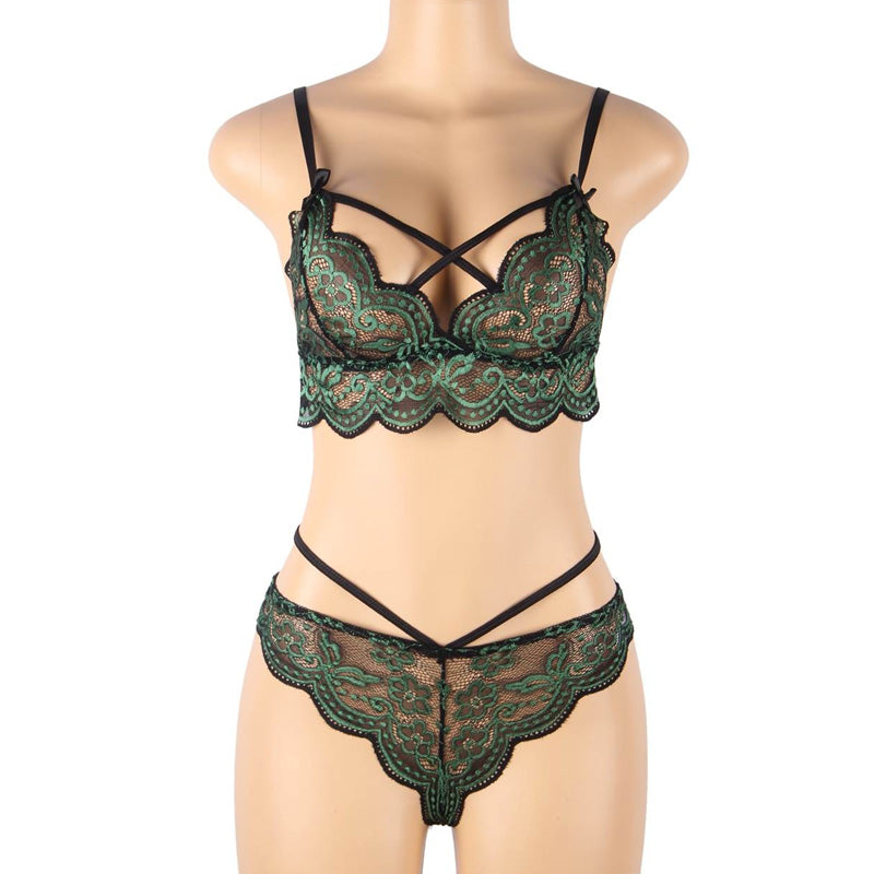 大きいサイズ レディースヴェルヴェットローズ・クロスコード・グリーンランジェリー下着セット(L/LL-3L/4L-5L)