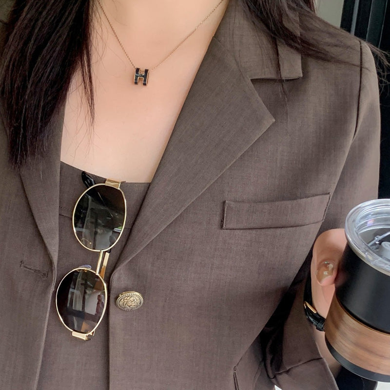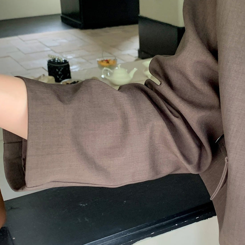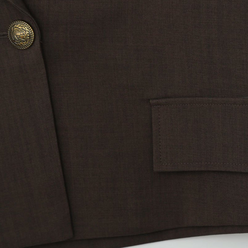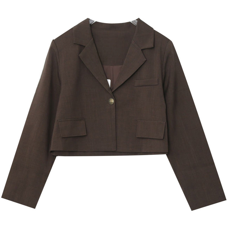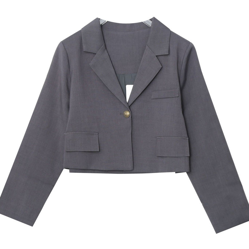 テーラードジャケットは短め丈で、羽織るだけでバランスよくスタイルアップ。