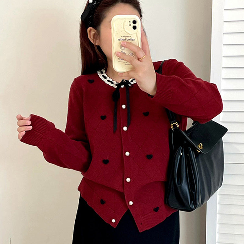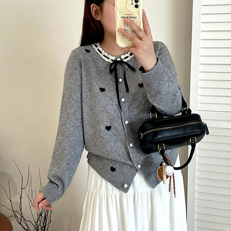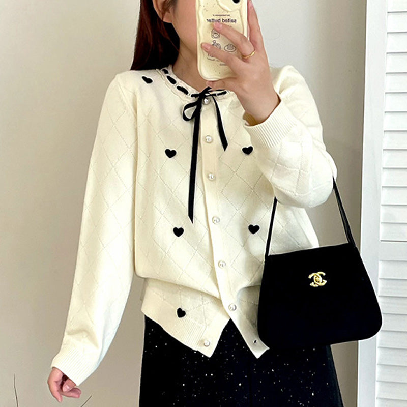 ふんわりやわらかなニット素材に、小さなハートモチーフを散りばめた上品デザインで、甘くなりすぎず大人っぽく着られます。