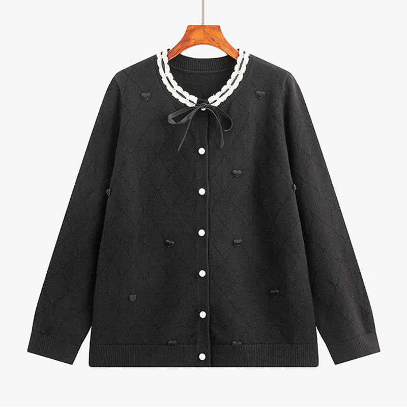 大きいサイズ レディースクラウンハート・リボンニットカーディガン(LL/3L/4L)