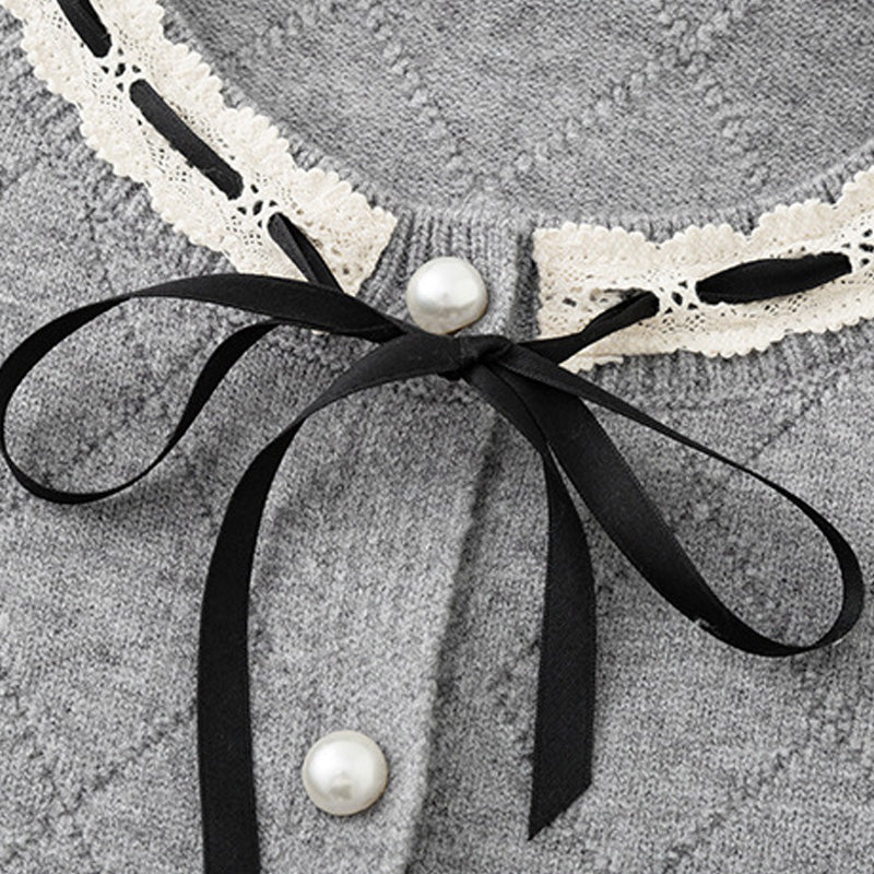 首元にはレースとリボンをあしらい、顔まわりをやさしく華やかに。