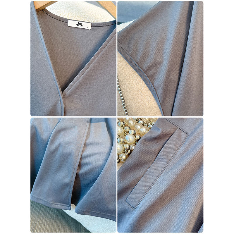 深すぎないVネックデザインは首元をきれいに見せてくれる大人のバランス。