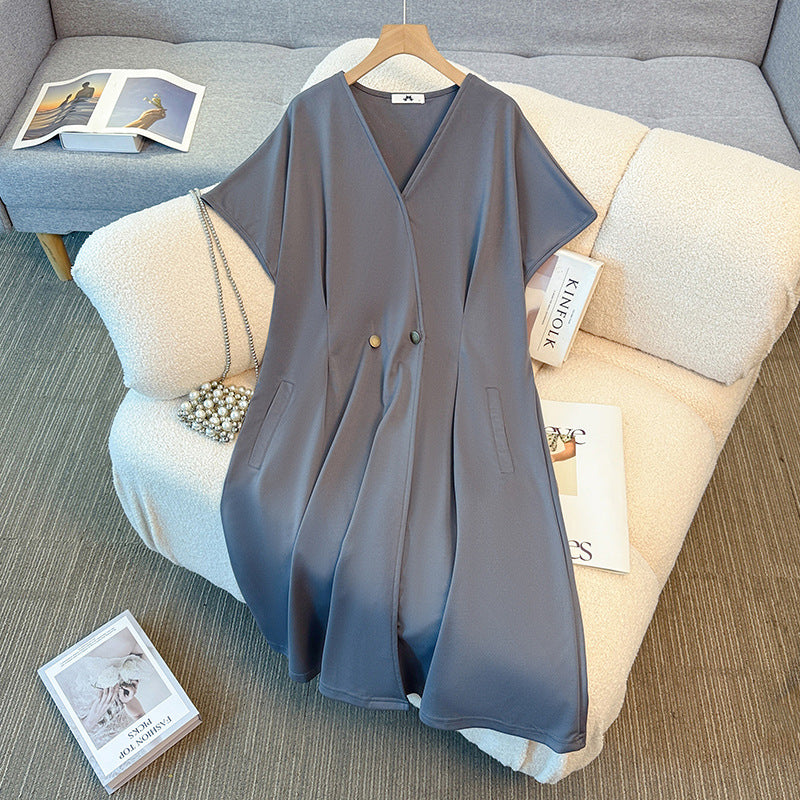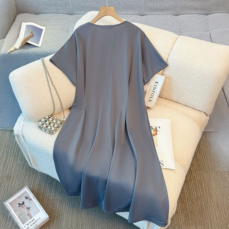 大きいサイズ レディース グレージュドレープ・ミニマル大人ワンピース(3L/4L/5L/6L/7L)