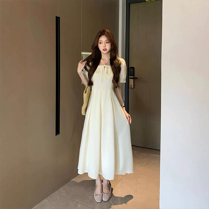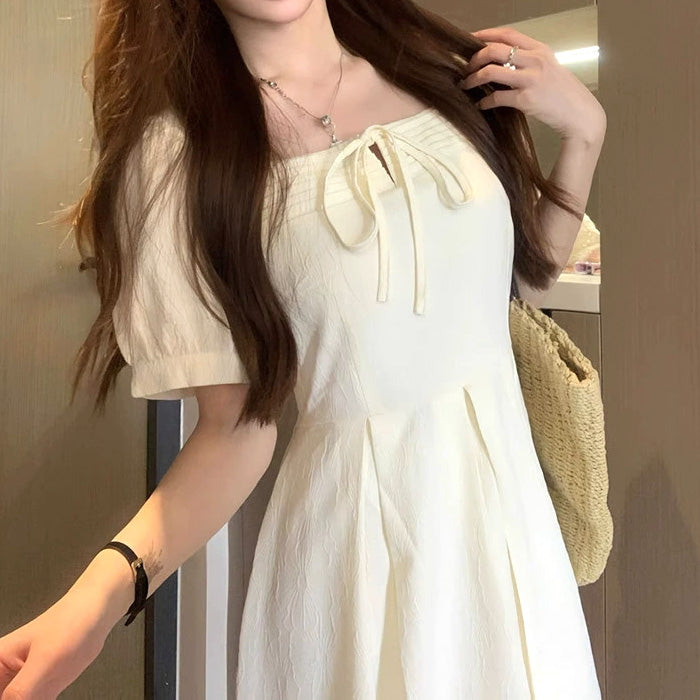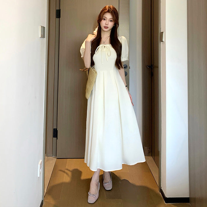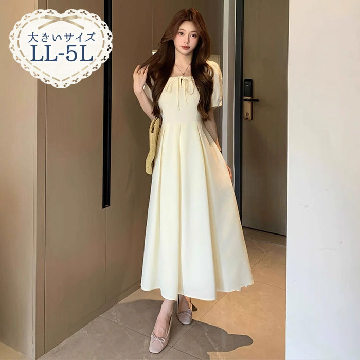 大きいサイズ レディース ミルクアイボリー・リボンフレアワンピース(LL/3L/4L/5L)