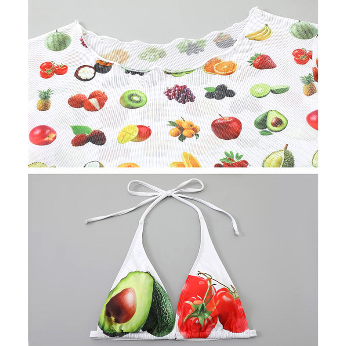 大きいサイズ レディース トロピカルフルーツのシアーカバー水着セット(L/LL/3L/4L/5L)