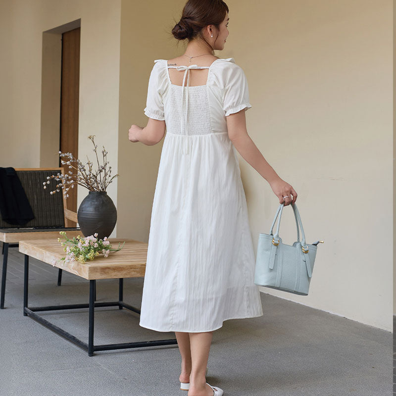 カフェ巡りやデート、ちょっとしたお出かけにもぴったり。プラスサイズでも清楚で女性らしい印象を演出してくれる1着です。