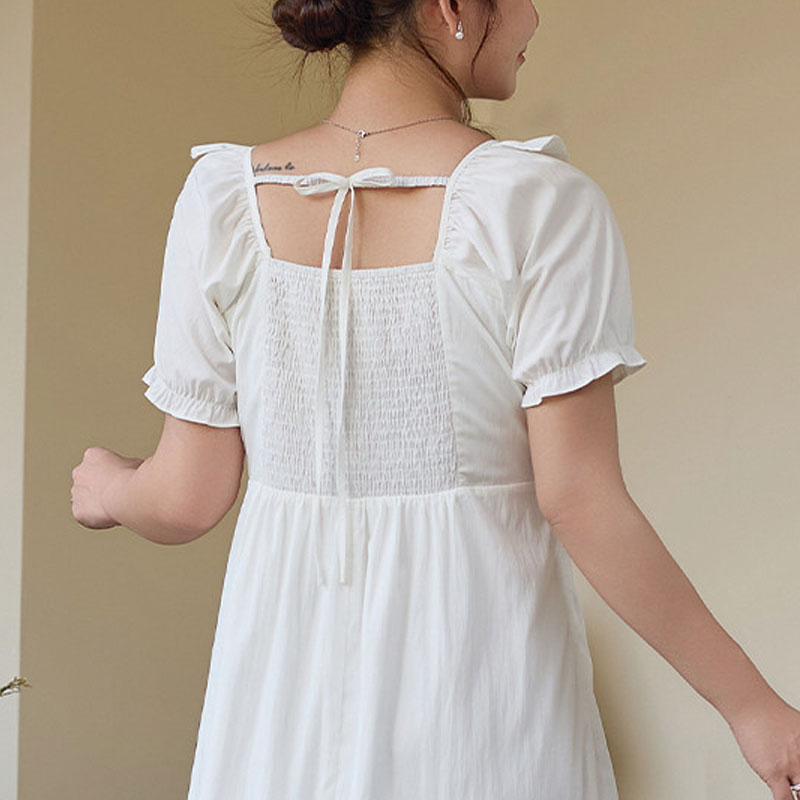 背中はシャーリング仕様で伸縮性があり、着脱もしやすく快適。ぽっちゃりさんでも無理なく着られて、大きいサイズでもきれいに整うのが嬉しいポイントです。