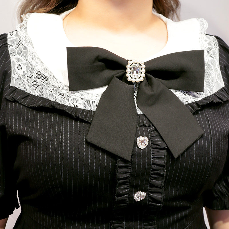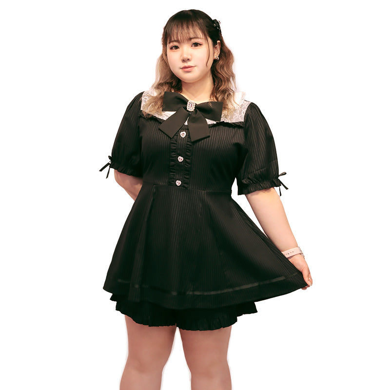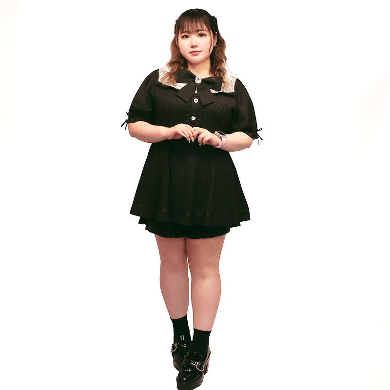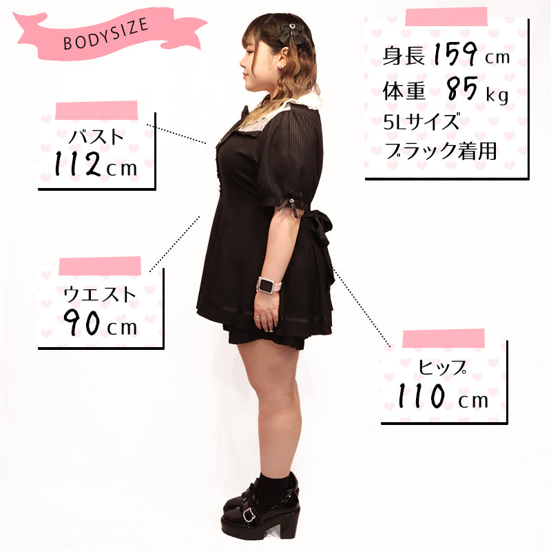大きいサイズレディースストライプの地雷ちゃん半袖セットアップ(3L/4L/5L/6L)/Taberunosky(タベルノスキー)